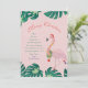 Tropical Pink Christmas Flamingo Red Santa Hat Yellow Fairy Lights Blue Baubles Holiday Card