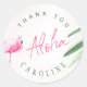 Tropical pink flamingo Aloha birthday thank you Classic Round Sticker