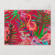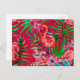 Tropical pink flamingo art postcard