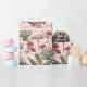 This elegant tropical flaming wrapping paper features a floral pattern of hand-drawn pink flamingos, hibiscus and jasmine flowers, pineapples, banana leaves and tropical drinks, all against an elegant soft pink background.