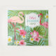 Celebrate your grad with chic tropical graduation luau party backdrop for photos, featuring a two pink flamingos with lush aqua and green palm leaf fronds, and pretty hibiscus flowers in shades of hot pink, sunshine yellow, green, and white. Personalise the custom text with the graduate's first name.