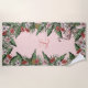 Tropical Pink Flamingo & Hibiscus Monogrammed Beach Towel