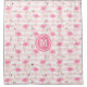 This colourful shower curtain features a pattern of pink flamingo birds and faux gold circle dots. The images are placed on a lighter pink and white striped background. At the centre is a matching pink circle banner with your monogram in lighter pink. Be sure to see the matching products, including a bath towel set and bath mat, in our store.