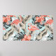 Tropical pink flamingo with orchid flowers and leaves pattern