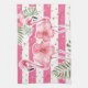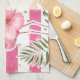 Tropical Pink Flamingos Floral Gold Polka Dots Tea Towel