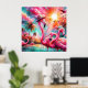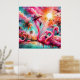 Tropical Pink Flamingos Palm Trees Sun Water Teal Poster