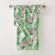 Green tropical leaves and pink anthurium flowers decorate this shower curtain, a beautiful accent to your home bath decor. MATCHING items in our collection.