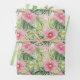 Tropical Pink Floral Green Stripes Wedding Wrapping Paper Sheet