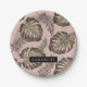 Tropical Pink & Gold Palm Leaves Pattern & Name Paper Plate