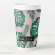 Tropical Pink & Green Palm Leaves Pattern & Name Latte Mug