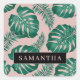 Tropical Pink & Green Palm Leaves Pattern & Name Square Sticker