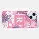 Tropical pink hibiscus personalised Monogram Case-Mate iPhone Case