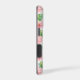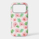 A cute tropical pink hibiscus iPhone case. This summer themed iPhone case features hand painted watercolor hibiscus flowers, monstera leaves on a cream background with white stripes.
