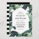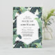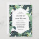Glamourous banana leaves adorn this modern wedding invitation. A chic geometric element and lush tropical foliage lends itself to a truly stylish affair. Enter our shop for coordinating items: