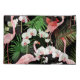 Seamless pattern, background with tropical plants, flowers and birds. Coloured Vintage illustration. Isolated on black background.
