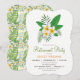 Summer Hawaiian Tropical Plumeria retirement party invitation. Invite features orange and white Plumeria flowers.