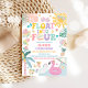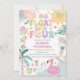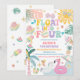 Make a splash with this vibrant tropical pool party birthday invitation, perfect for a summer celebration! Featuring playful illustrations of flamingo and swan floats, palm trees, ice cream, popsicles, and sunny beach vibes, this design is ideal for a childs birthday. The colorful layout sets the tone for a fun-filled day by the pool, while customizable text ensures every detail is tailored to your event. A cheerful and eye-catching choice that will delight guests and create excitement for the big day.