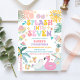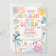 Make a splash with this colourful tropical pool party birthday invitation, perfect for kids celebrating a summer milestone! Featuring playful illustrations of ice cream, popsicles, watermelon, flamingo floats, palm trees, and sunshine, this design sets the tone for a fun-filled celebration. The vibrant pastel colours and whimsical fonts create a cheerful, beachy vibe that guests will love. Ideal for pool parties, summer birthdays, or tropical-themed events, this invitation is both stylish and festive.