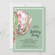 A beautiful hand painted watercolor pink protea floral blossom on a mint green background, this invitation is a fabulous change from traditional Christmas holiday party invitations. Perfect for a tropical touch to your celebration. MATCHING items in our store.