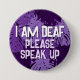 Let people know about your medical needs with this tropical badge by JessicaAmber. This button features the slogan 'I am deaf. Please speak up.' in a bold font, over a pattern of purple palm leaves. You can edit the text as needed. A great accessory for your next summer vacation. 🌿 For more deafness pins, visit my store Zazzle.com/Elder_Vitality 🌿 For custom orders, message me on Zazzle