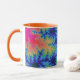This colourful fractal coffee mug has bright and vibrant colours such as pink, orange and light blue. These mugs have several different colours to choose from for the inside and handle of the mug. Also, you can choose from the style and size of these mugs. These mugs are great for kitchen and office use.