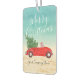 Want to send Christmas wishes that aren't "just another card" this year from your business in the tropics? Send this fun Merry Christmas car air freshener as a tropical Christmas card alternative! It's our tropical version of the trending red pick-up truck our counterparts in snowy parts of the world are sending this holiday season. It features a vintage red convertible car -- top down, because we can! -- with a Christmas tree stowed in the back seat on its way home to a very warm and tropical Christmas celebration. The typography is a fun, festive, whimsical, script and customisable, from top to bottom. The scene is set on a tropical aqua ocean and sandy beach scene. The reverse side features the same background image, a tiny copy of the red convertible and tree, plus your website address or name and the year. Make it a tropical holiday!