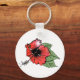 Tropical Red Hibiscus Flower with Green Leaves Key Ring