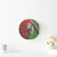The clock did not take as long to arrive as I thought it might and was extremely well packaged. I didn't do the measurements so I didn't realize it is a little smaller than the average clock but that does not matter (just make sure you check if that's important to you).It is really nifty! It seems very solid and well made not flimsy at all. It has been going well and has kept good time in its few weeks on my wall. Nice product. Gets noticed too! Nicer in real life than the picture but true to the picture
