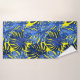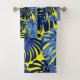 Tropical Royal Blue Yellow Monstera Jungle Leaves Bath Towel Set