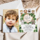 Celebrate your little boy's 1st birthday with this whimsical safari-themed party invitation. The design features a group of adorable jungle animals and lush tropical watercolor greenery