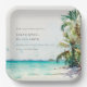 Tropical Sand Beach Watercolor Palm Trees Wedding Paper Plate