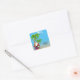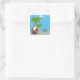 Santa Claus with tropical palm trees and gifts in beach sand with starfish