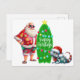 A Cute Tropical Santa Greeting Postcard With Santa, Surfboard, And Lguana