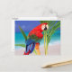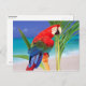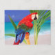 Animal card showing a beautiful scarlet macaw in a tropical landscape. The scarlet macaw (Ara macao) is a large, red, yellow and blue South American parrot, a member of a large group of Neotropical parrots called macaws. It is native to humid evergreen forests of tropical South America. Range extends from extreme south-eastern Mexico to Amazonian Peru, Bolivia, Venezuela and Brazil in lowlands.