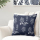 A Classical Tropical Beach House Sea Horse with Shells and Coral Throw Pillow with a Navy Blue and White Background. The design on this throw pillow was created by Totally Coast designer, Jillee K. Please feel free to click on "Message" below if you have any enquiries. Jillee would love to hear from you and know what you would love. © Totally Coast 2021