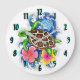 Tropical Sea Turtle and Hibiscus Flowers Large Clock