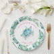 Sweet personalised plates for your tropical sea turtle themed backyard baby shower. This design features a monstera palm leaves border with a watercolor sea turtle. Personalise with the mama-to-be's name and shower date in pink. To see the matching beach theme aloha party decor visit www.zazzle.com/dotellabelle