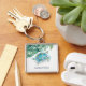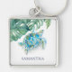 Add a splash of tropical charm with these customisable keychains, featuring your custom monogram name in navy blue and a vibrant top border of watercolor sea turtle and monstera palm leaves by Victoria Grigaliunas. Perfect for gifts for her, these template keychains are a stylish accessory for any beach or tropical lover.