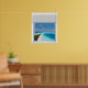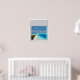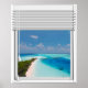 Beautiful blue sky and tropical seas, fake window scene, for a windowless bathroom or office wall. Fun, realistic optical illusion scenic poster for an office or study wall.