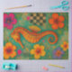 A vibrant, ocean-inspired seahorse stands proudly against a weathered teal backdrop, framed by lush hibiscus blooms in fiery orange, magenta, and violet. Delicate plumeria blossoms soften the composition, while vintage postcard lettering, layered script, and a distressed chequerboard pattern create a sense of timeless, coastal elegance. Perfect for adding a splash of marine magic to furniture, wall art, or craft projects.