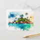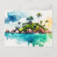 This is a beautiful painting of the Seychelles on a postcard. Seychelles is an archipelago of 115 islands in the Indian Ocean. The Seychelles Islands have a variety and abundance of sandy beaches, amazing tropical coral reefs, and rare animals on the islands! Makes a great product for every tourist of the famous travel destination.