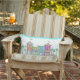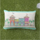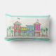 Hand Drawn Imaginary Tropical Shops Outdoor Lumbar Pillow; with Blue Green on back
