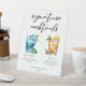 This tropical signature cocktails pedestal sign features simple black typography above 2 drinks and their ingredients for your wedding bar. A cute Blue Lagoon and Mai Tai drawing add a cool flair to your bar menu. Complete with the couple's names and date for their reception.