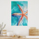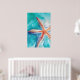 This colorful watercolor print features a turquoise blue ocean wave surrounding a beautiful starfish. This pretty print will add a splash of color to your beach home or any beach themed room. This print is unframed and available in many sizes to fit standard frames.