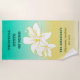 Bring the Beach Vibes Wherever You Go! Relax in style with this beautiful beach towel, featuring a stunning turquoise-to-yellow gradient that captures the essence of the ocean and sandy shore. Centred on the towel are two delicate hibiscus flowers, adding a tropical touch to your beach days.