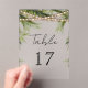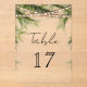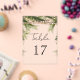 Elegant tropical theme wedding table number featuring modern typography.