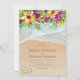 This summer, make your beach destination wedding dreams come true with this elegant tropical-themed invite! Featuring a sandy shoreline, ocean waves, vibrant watercolor flowers and foliage, string lights, and a heart carved in the sand with your initials, this modern wedding invitation template is easily customised for your special day. Plus, the exotic colour palette and design will bring a beautiful tropical feel to your special occasion. Create a wonderful summer wedding your guests will never forget with this easy-to-personalise invite.