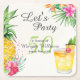 Create a tropical oasis for your loved one's retirement with our delightful paper coaster. The watercolor design bursts with a pineapple, Hawaiian flowers, and a cocktail, all set against a light, refreshing background. "Let’s Party" and "50" in a beautiful script font sets the tone. Customisable party details in a simple serif font make personalisation a breeze. Start planning the ultimate retirement celebration now – order your coaster today!