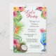 Celebrate your joint birthday with a tropical-themed party using our stunning watercolor invitations. Featuring Hawaiian flowers, a coconut, and a cocktail against a light background, the design bursts with vibrant energy. "Let’s Party" in elegant script sets the festive tone, while the back promises "Dine, Drink, Dance." Easily customise every detail in a classic serif font to create the perfect invitation. Start planning an unforgettable joint birthday bash today – order your personalised invitations now!