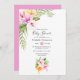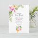 Watercolor summer baby shower invitation featuring orange and pink hibiscus.